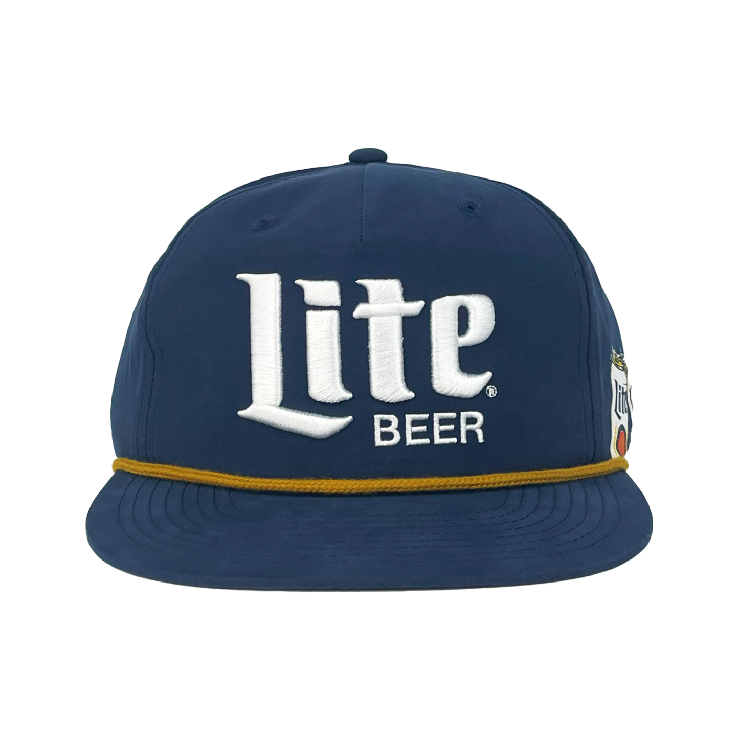 This 5-panel, flat bill, snapback features a cotton sweatband with added vapor barrier for ultimate comfort. The UPF 50+ rating means you're protected from the harshest UV damage. Lightweight durability and modern cap design, featuring the iconic Cheersing Miller Lite Cans!