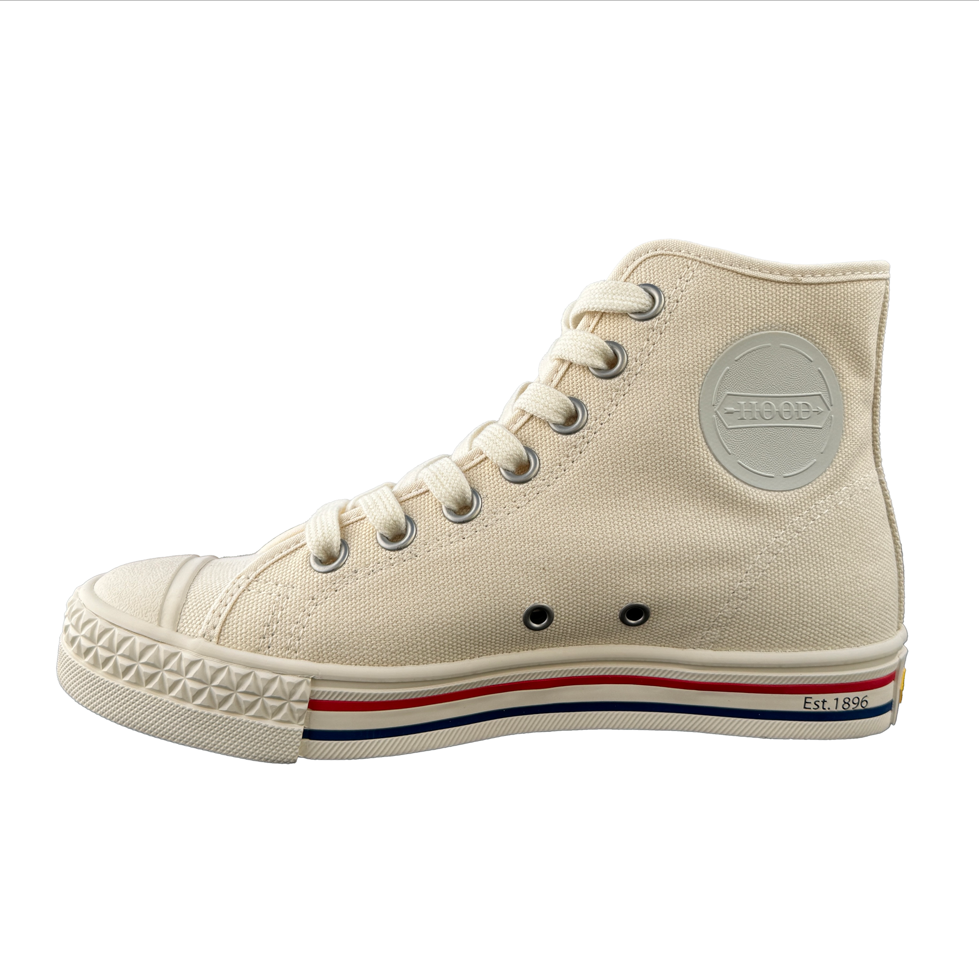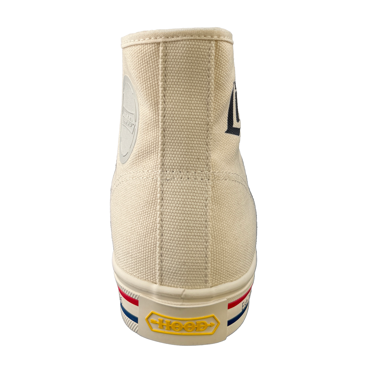 1967 high cut professional basketball shoe. Lace-to-toe Bal. "Peg Top" No. 11 Distressed 6oz washed canvas duck upper with loose army duck lining. Ventilating eyelets.