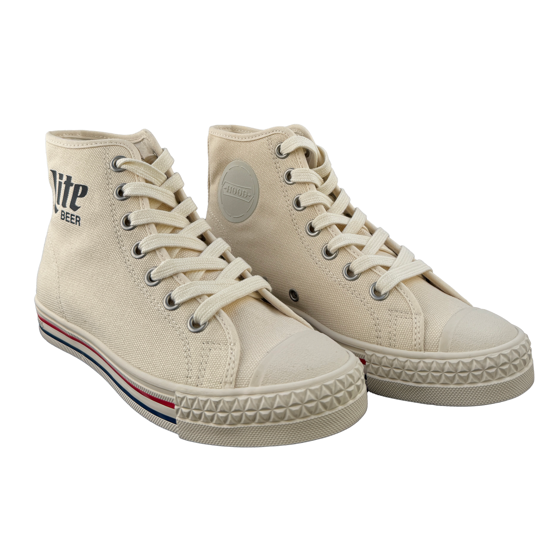 Take a walk down memory lane with the Mitchell & Ness x Miller Lite 1967 Rocket High Cut Sneakers. These kicks combine classic high-top basketball style with a cool Miller Lite twist.