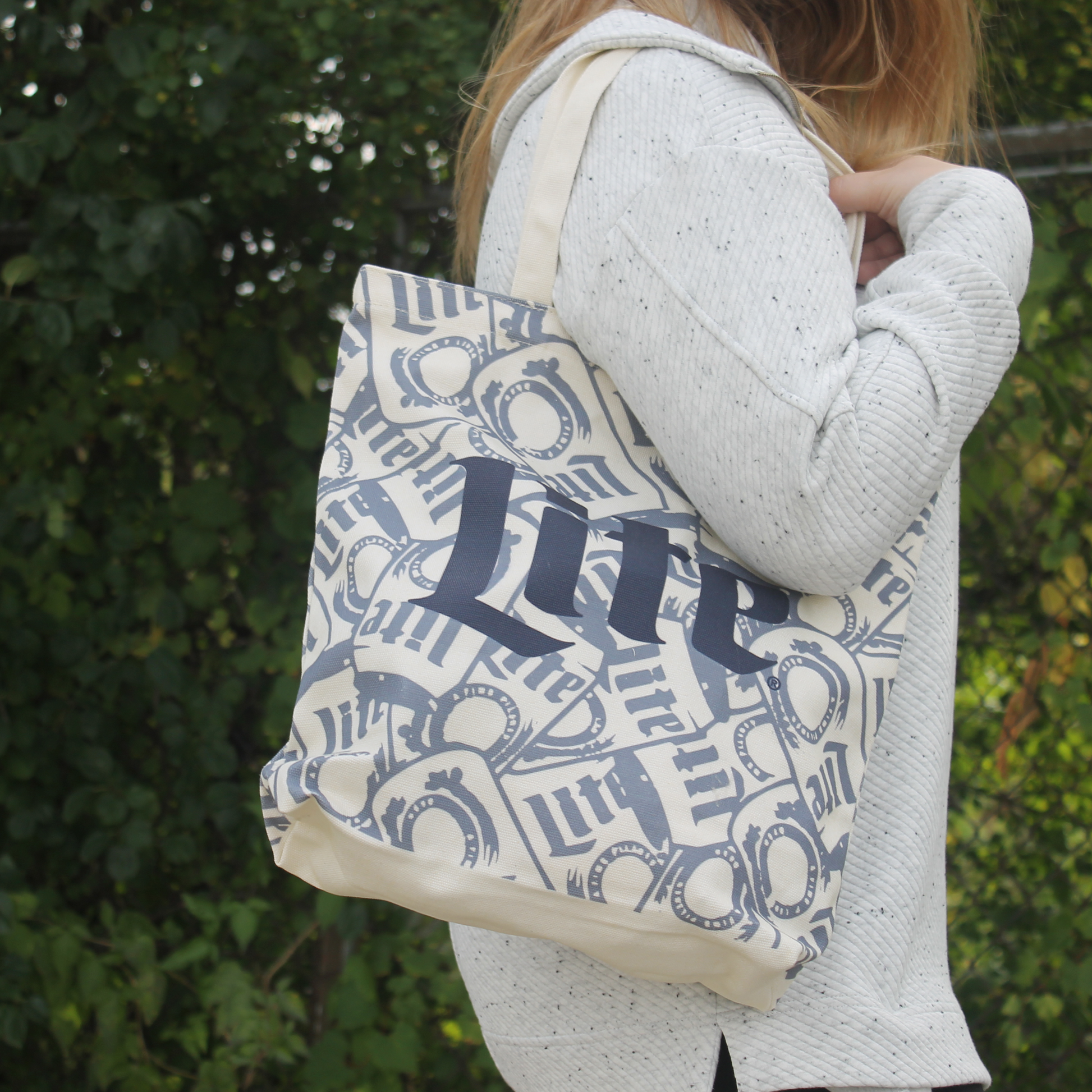 Carry your essentials in style with this eye-catching tote bag featuring a classic Miller Lite design. Perfect for grocery shopping, beach days, or any casual outing.