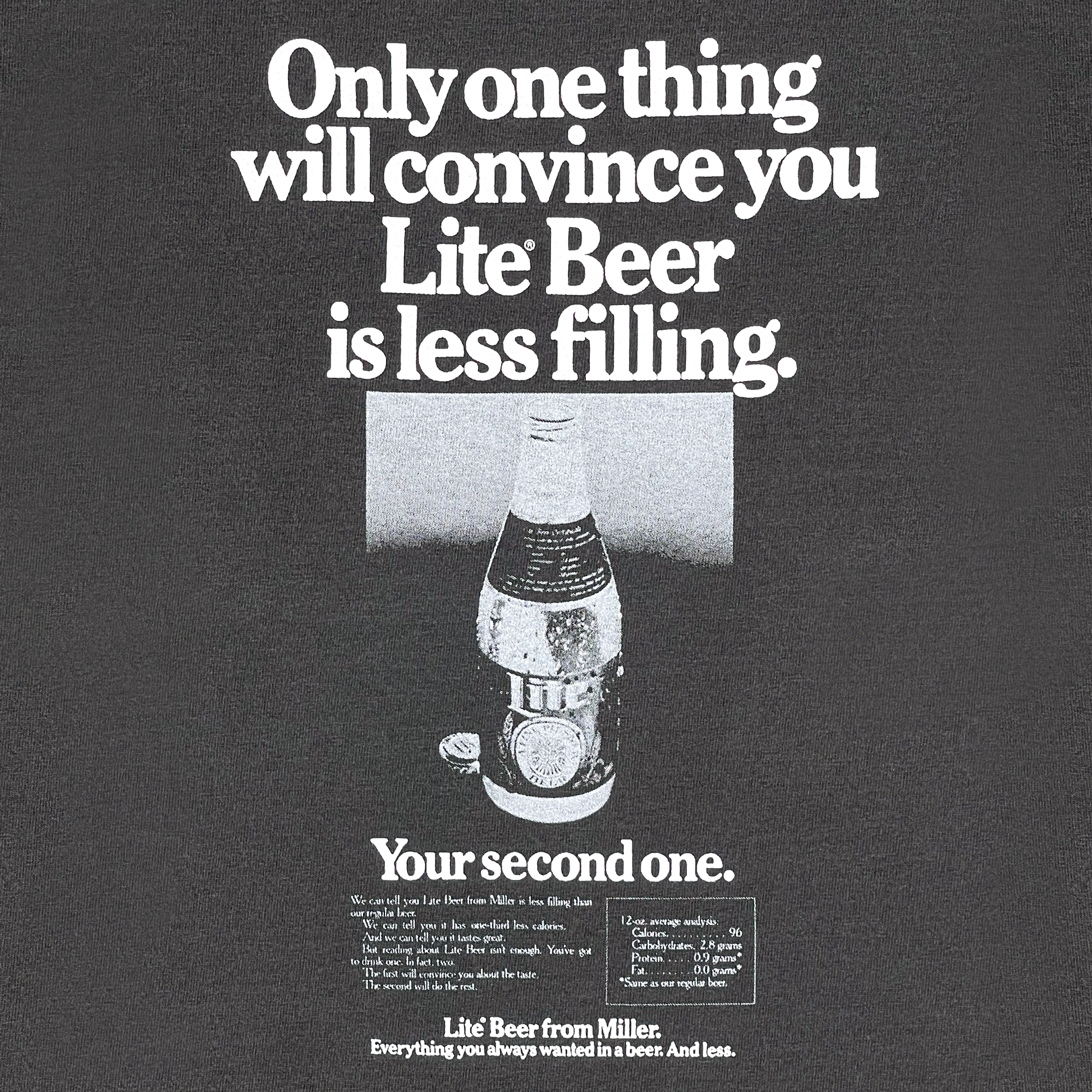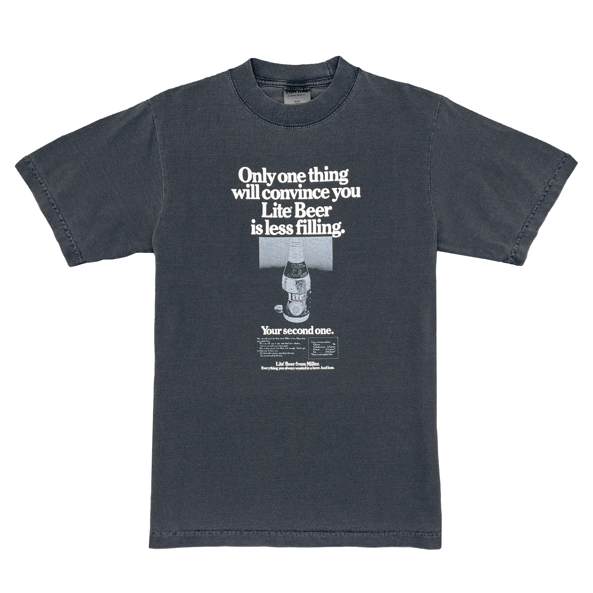 The Lite Beer Vintage Ad Tee features a classic Miller Lite ad. Shrink-free washed-out Max Heavyweight Tees are Pigment / Reactive-washed for a vintage look. Oversized fit and densely knit for clean printing. Perfect for any occasion.